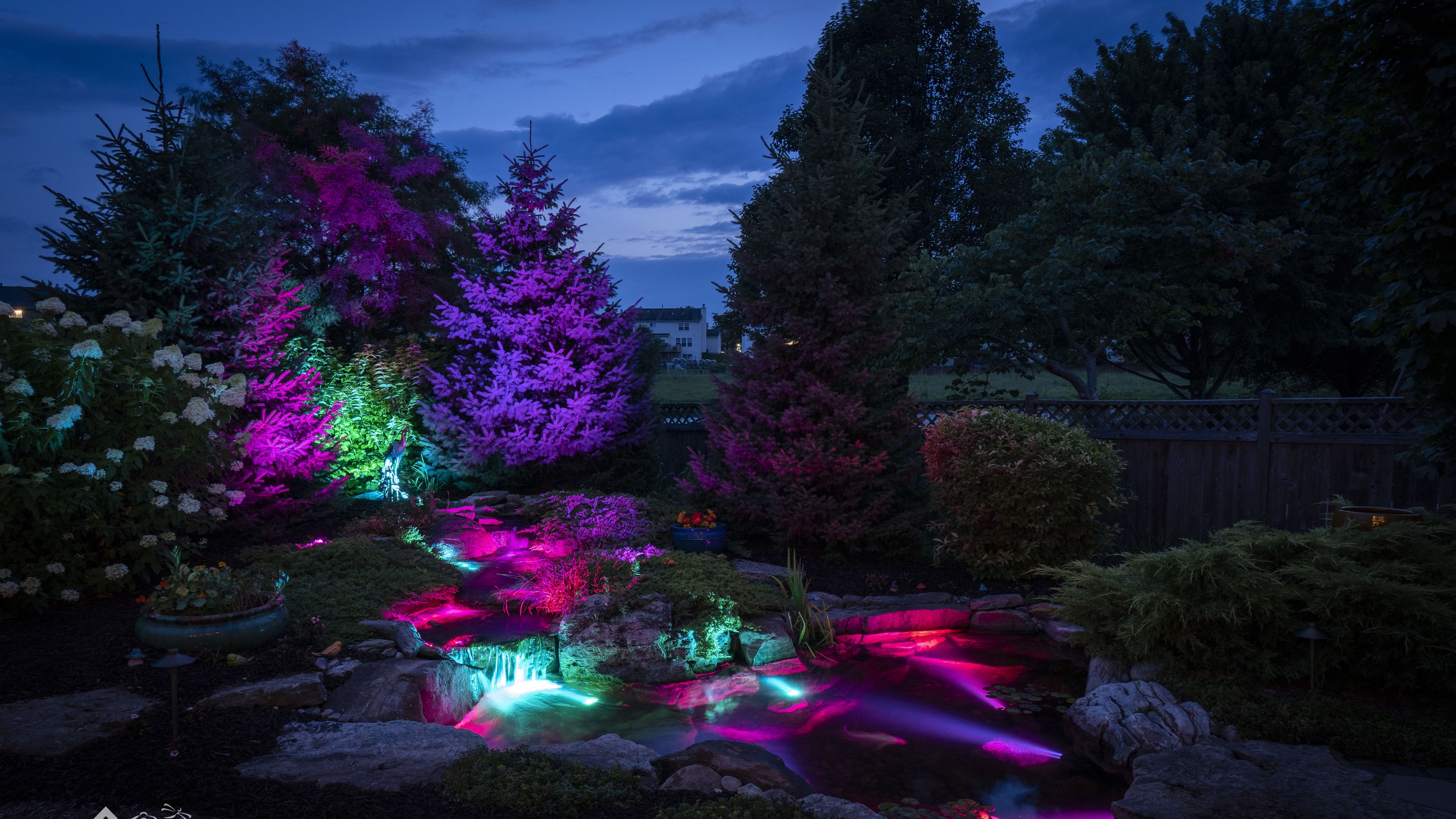 Allow us to give your water feature a whole new light. Extend your enjoyment of your beloved water feature into the night with our fully customizable underwater lighting solutions.